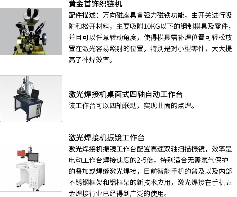 通發(fā)激光研發(fā)針對配合黃金織鏈機(jī)、K金制鏈機(jī)、首飾織鏈機(jī)、項(xiàng)鏈織鏈機(jī)的TFL-40PF自動光纖激光焊接機(jī),焊接機(jī)采用能量反饋技術(shù),光點(diǎn)穩(wěn)定,能量強(qiáng)勁,便與安裝,實(shí)現(xiàn)一環(huán)一焊的功能,確保金鏈的耐拉強(qiáng)度。本激光焊機(jī)實(shí)現(xiàn)了風(fēng)冷一體的小型化結(jié)構(gòu)。適用于各種生產(chǎn)場所。