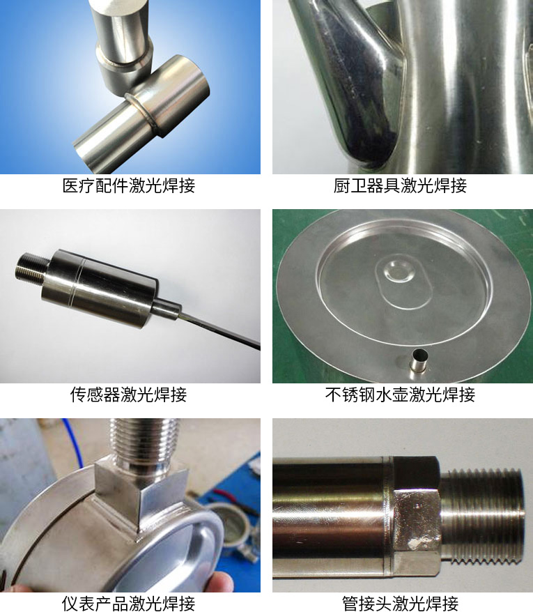 現廣泛應用的領域有手機外殼、筆記本電腦外殼、五金構件、廚具衛(wèi)浴、軍工制造、電池外殼、動力電池、儀器儀表、馬達、IT手機構件、硅鋼片、汽車配件、激光熔覆、醫(yī)療器械等精密零件焊接。