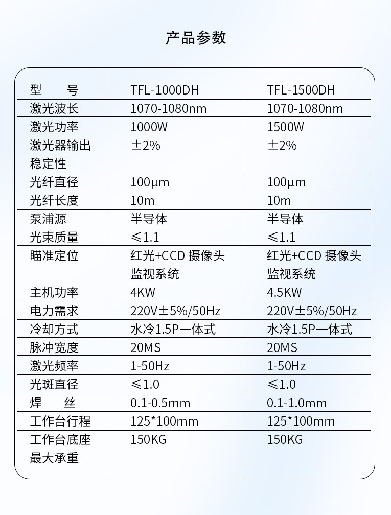 | 激光功率 | 1000W | 1500W |