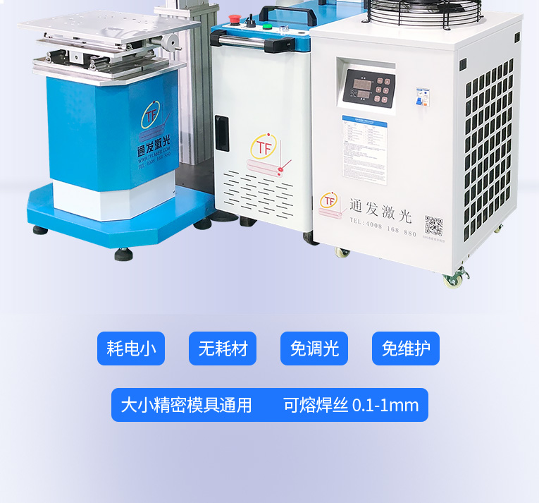 1、采用光纖激光器,反射率高,能量強,免維護,免調光,功耗少,相比傳統 模具焊來說,體積小,安全,穩定性好超長使用壽命。